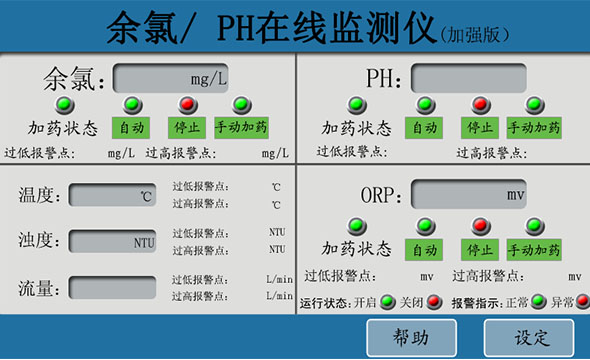 監(jiān)測(cè)儀除了以上全自動(dòng)控制方式以外,還設(shè)有手動(dòng)加藥功能,當(dāng)你需要快速提升或降低值時(shí),可以使用這個(gè)功能。當(dāng)你啟動(dòng)了手動(dòng)加藥時(shí),如果當(dāng)前池水的PH值是低于標(biāo)準(zhǔn)值的,則啟動(dòng)的是加堿的指令,控制加堿的投藥泵運(yùn)行3分鐘進(jìn)行加堿;如果當(dāng)前池水的pH值高于標(biāo)準(zhǔn)值的,則啟動(dòng)的是加酸的指令,控制加酸的投藥泵運(yùn)行3分鐘進(jìn)行加酸。3分鐘加藥時(shí)間運(yùn)行結(jié)束后,儀器將回到自動(dòng)狀態(tài)。
