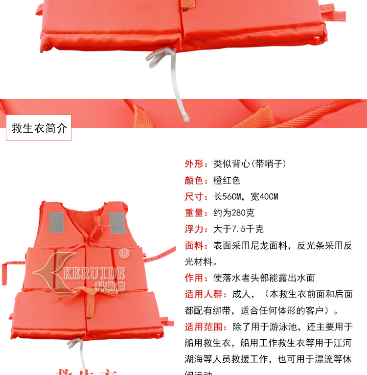 本產(chǎn)品為成人用的救生衣,屬于游泳池救生用品的一種,也叫游泳池救生衣,游泳救生衣,游泳救生衣。主要用于船用救生衣,船用工作救生衣等用于江河湖海等人員救援工作,也可用于漂流等休閑運(yùn)動(dòng)。?