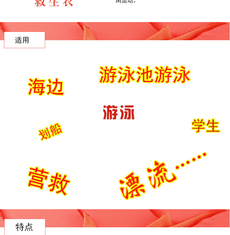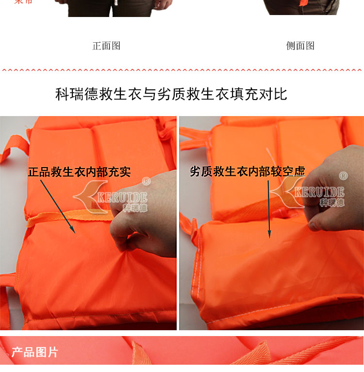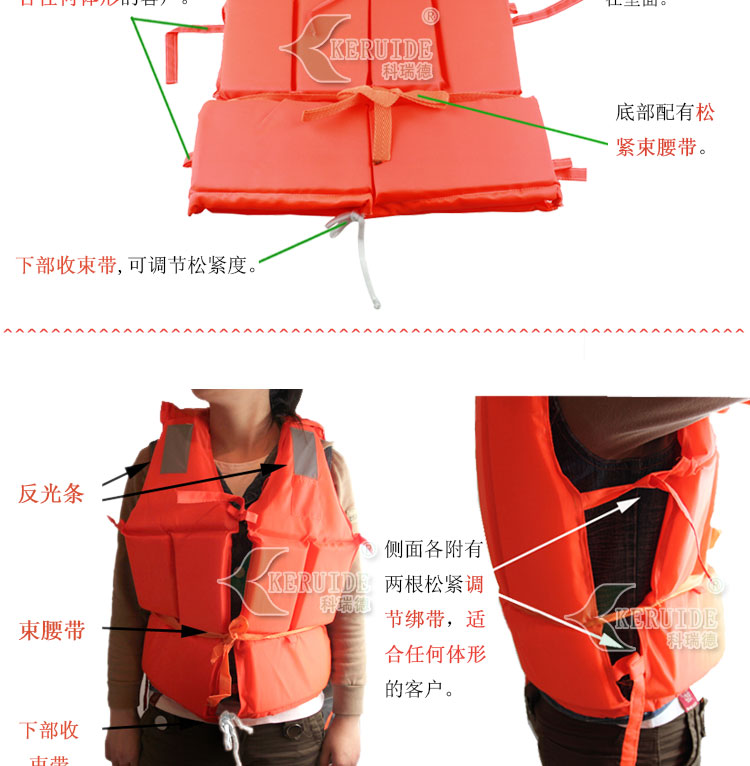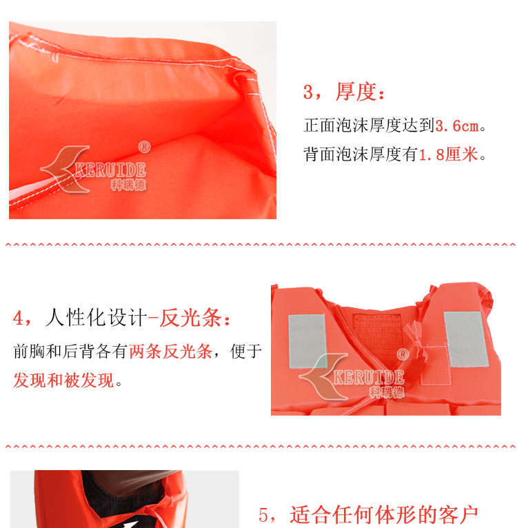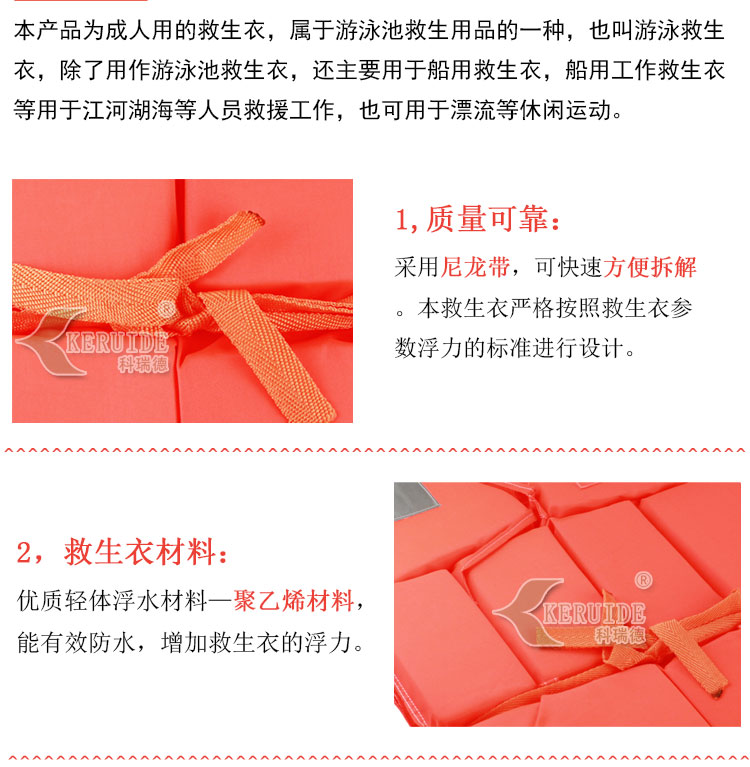 ?2,采用救生衣材料:優(yōu)質(zhì)輕體浮水材料—聚乙烯材料,能有效防水,增加救生衣的浮力。?