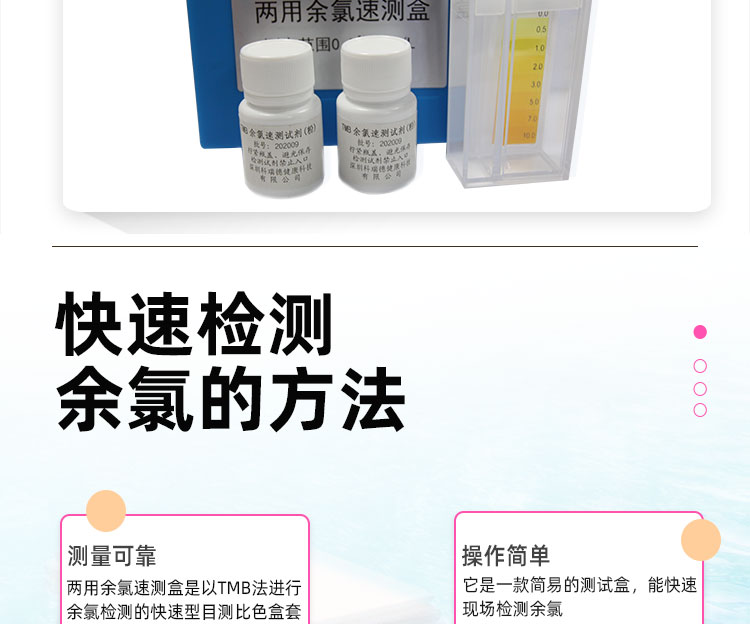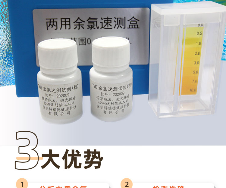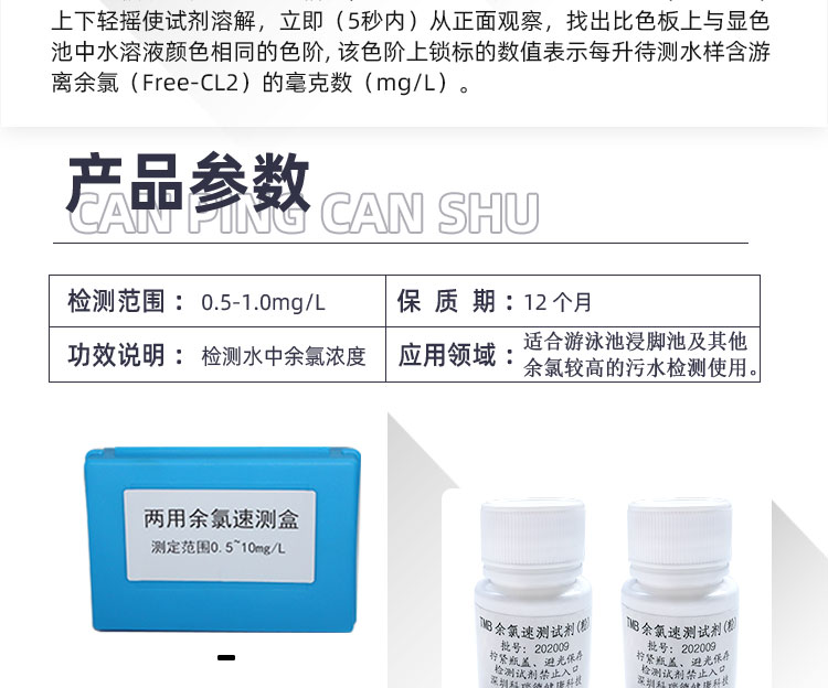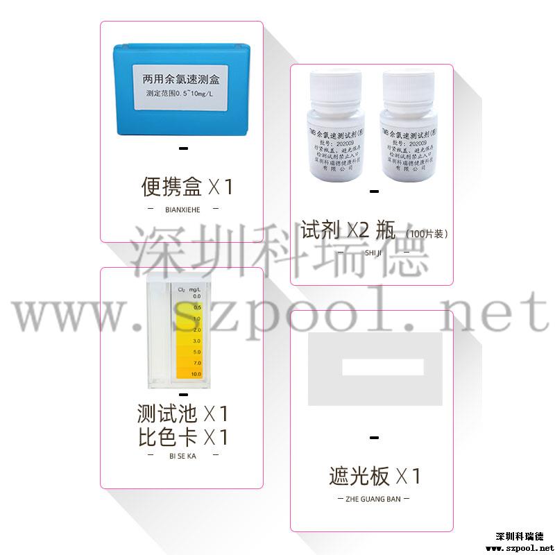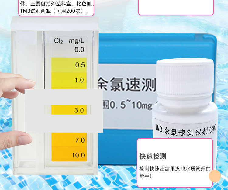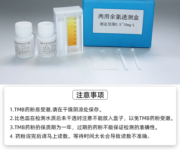 兩用余氯速測盒,是以TMB法進(jìn)行余氯檢測的快速型目測比色盒套件,主要包括外塑料盒、比色皿、TMB試劑兩瓶(可用200次)。