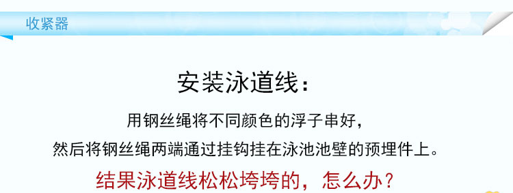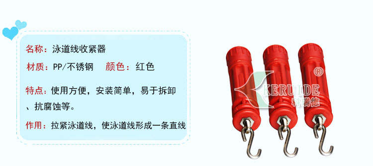 使用本泳道線收緊器的特點是使用方便,易于拆卸,安裝簡單、抗腐蝕,防氧化等特點。