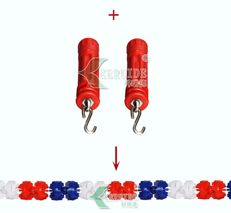 用鋼絲繩將不同顏色的浮子串起,串的過程中要注意美觀并且要用鮮艷顏色的浮子。