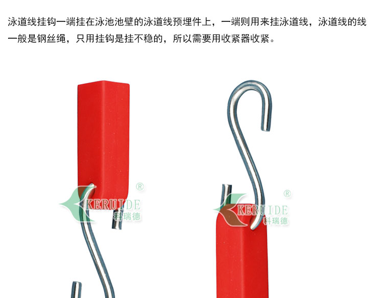 泳道線掛鉤是掛在泳道線預(yù)埋件上的器械,屬于游泳比賽用品中的泳道配件,也叫:分水線鉤,收緊器掛鉤。本泳道線掛鉤由304不銹鋼制成,質(zhì)量可靠、價格實惠。泳道線掛鉤一端掛在泳池池壁的泳道線預(yù)埋件上,一端則用來掛泳道線,泳道線的線一般用鋼絲繩串成一條與泳池一樣的長度,然后再用收緊器收緊,掛鉤與收緊器連接。
