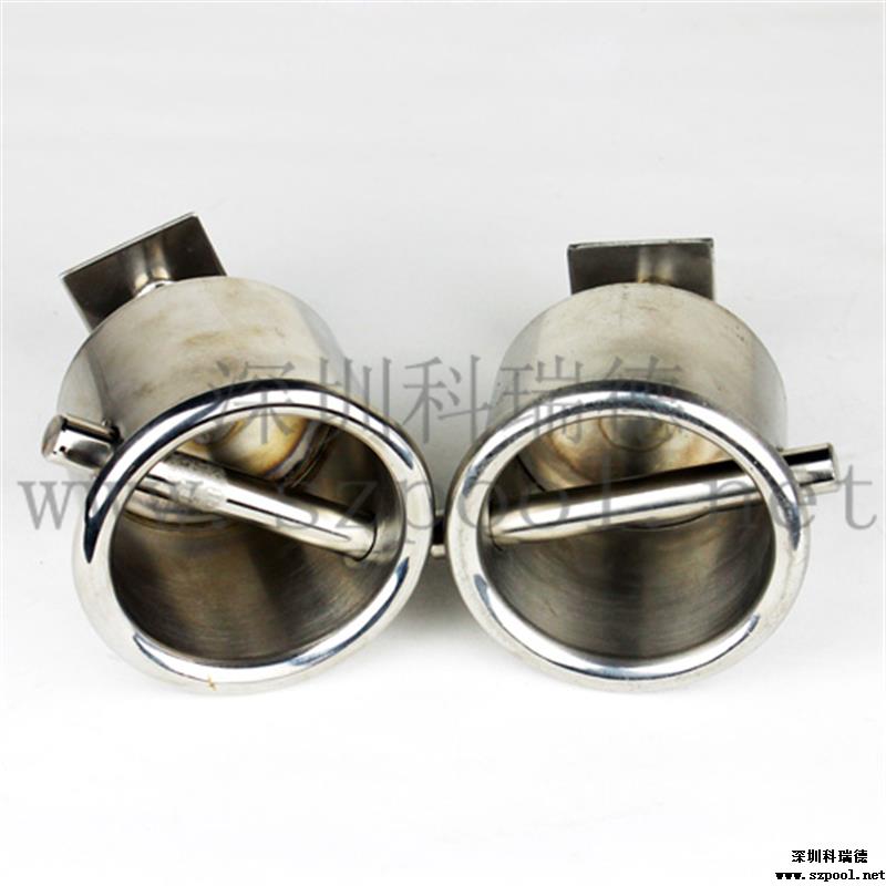 本泳道線預(yù)埋件看似一個(gè)高腳酒杯,也正是因?yàn)檫@樣的設(shè)計(jì),才能使預(yù)埋件在泳池建造之初牢固地固定在泳池池壁上?!熬票钡牡鬃情L(zhǎng)方形的鋼片,它是固定泳池預(yù)埋件的關(guān)鍵。杯子里面橫插了一根鋼管,安裝泳道線時(shí)掛鉤就掛在鋼管上即可。