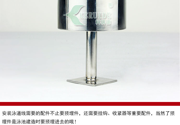 安裝泳道線需要的配件不止要預(yù)埋件,還需要掛鉤、收緊器等重要配件,當(dāng)然了預(yù)埋件是泳池建造時(shí)要預(yù)埋進(jìn)去的哦!