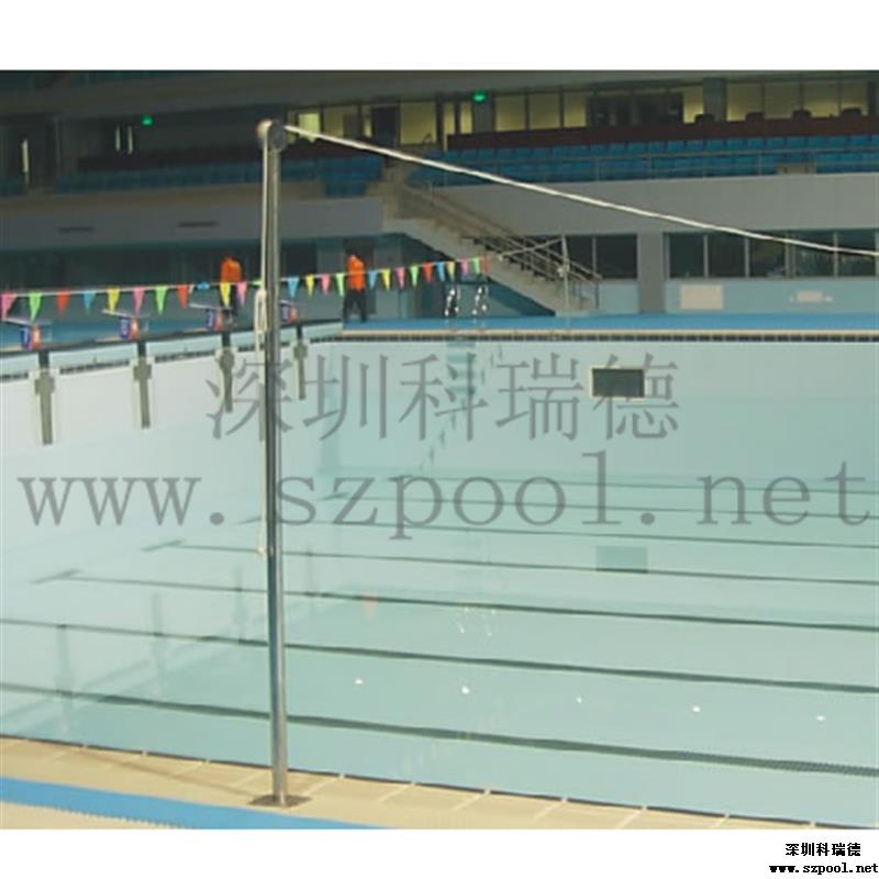 犯規(guī)召回標(biāo)志線:游泳比賽時(shí)用來及時(shí)召回?fù)屘叩难b置。犯規(guī)召回線由兩根不銹鋼插桿及其預(yù)埋件、一條帶有若干塑料浮漂的線繩和線繩的快速釋放裝置等組成。