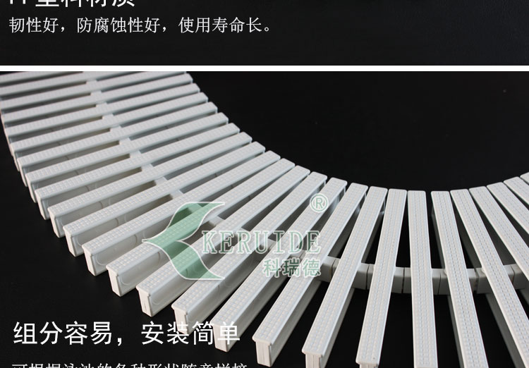 游泳池格柵,又叫泳池游泳池排水溝格柵,防滑渠面格柵,也可叫游泳池溢水格柵、防滑篦子、渠面篦子、地溝蓋;一般人們簡稱為格柵。作用為:作為游泳池四周排水溝的塑料蓋板,在保持可以方便人們的情況下又起到排水的功能。屬于游泳池排水設(shè)備。