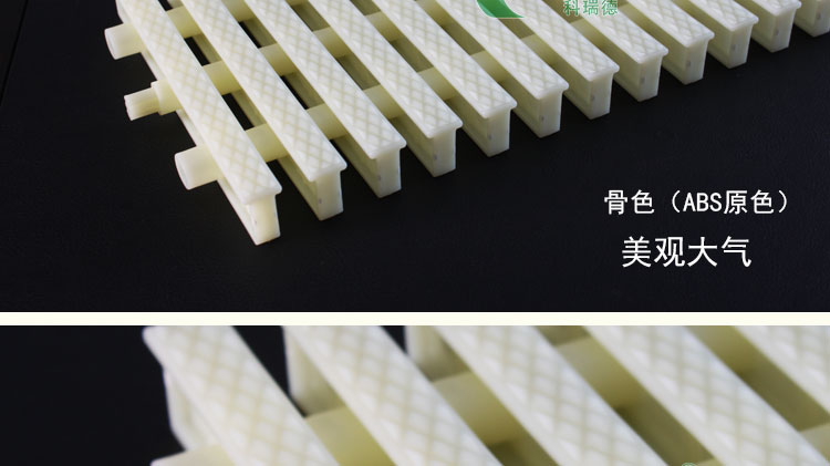 格柵材質(zhì)為ABS塑料制成,具有優(yōu)良的抗沖擊性、耐熱性、耐低溫性、耐化學(xué)藥品性及電氣性能,還具有格柵尺寸穩(wěn)定、表面光澤性好等特點。