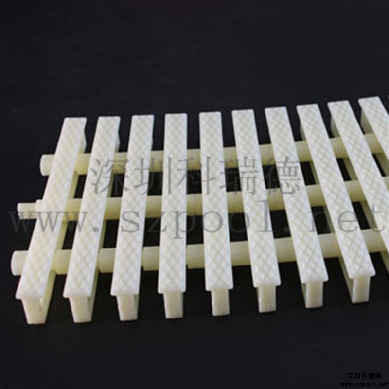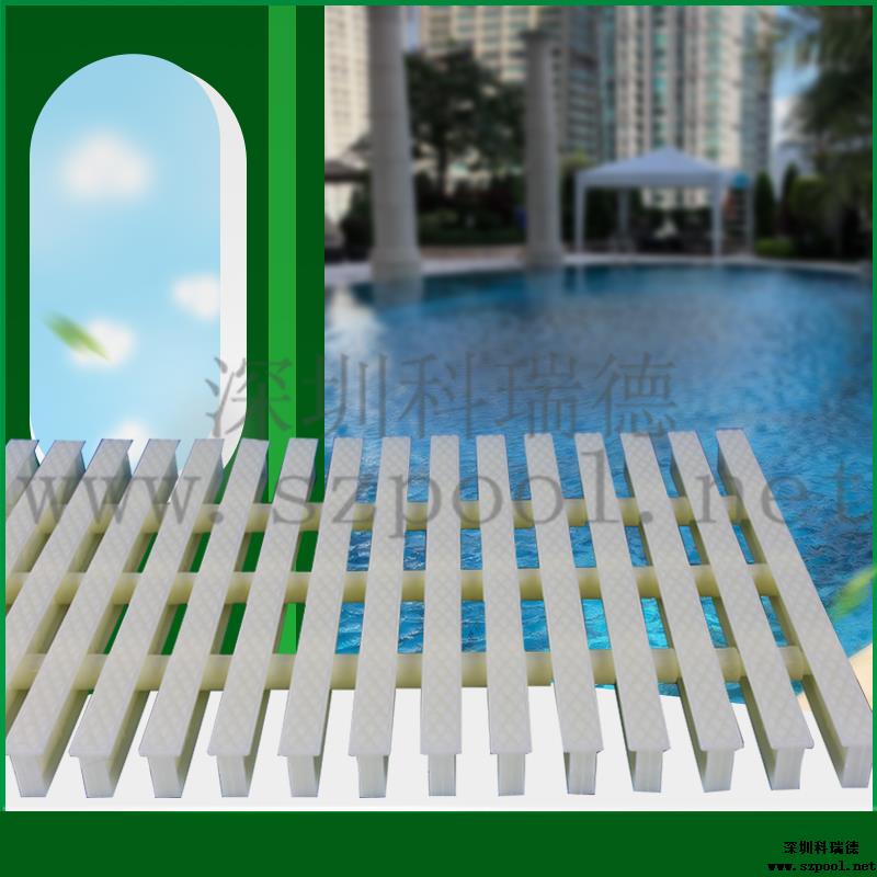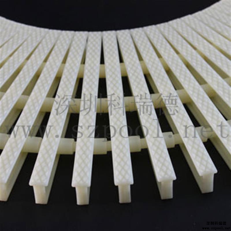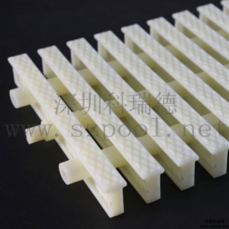 其一:防滑性,本泳池格柵表面布滿菱形的凸紋,具有非常好的防滑效果,凸紋邊緣柔和,清洗方便。