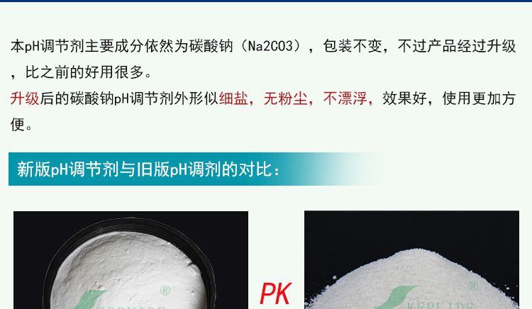 本pH調(diào)節(jié)劑,外形似細(xì)鹽,無(wú)粉塵,不漂浮,使用方便。