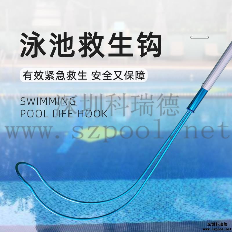 游泳池救生鉤,用于游泳池救生時使用的救生器材,主要是在游泳池有人溺水時,救生員在岸邊可以使用救生鉤較快地在岸上將溺水者鉤到池邊進(jìn)行救助。一般與伸縮桿連接使用。