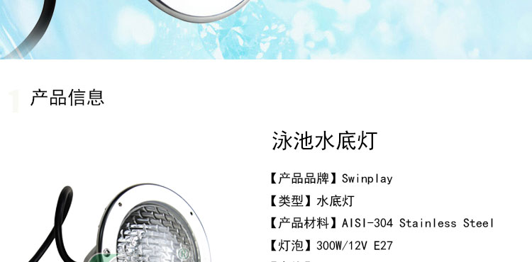 每個(gè)游泳池都需要安裝游泳池池底燈,游泳池池底燈可以照明游泳池池底,方便泳客看清泳池底部情況。池底燈是主要用于游泳池、景觀水、 噴泉等水下裝飾及照明,其防水、低電壓,性能穩(wěn)定可靠。