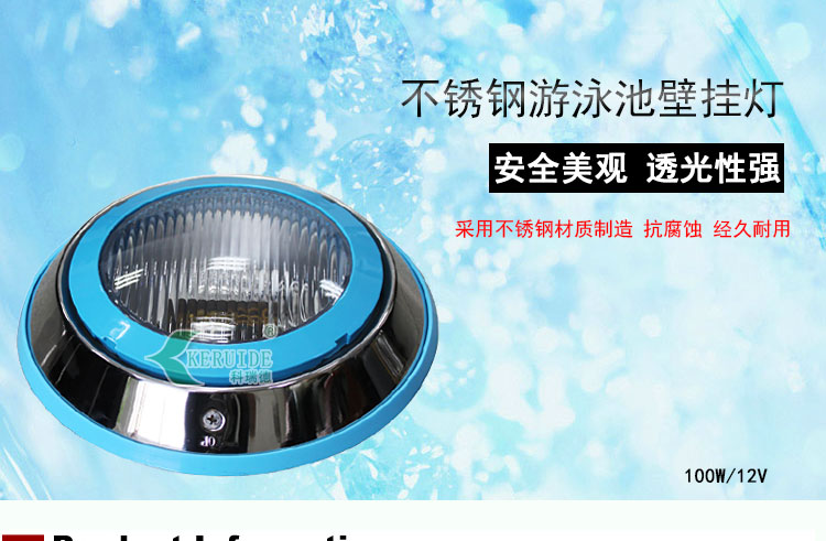 池壁燈也叫壁掛燈、水下掛燈,一 般安裝在游泳池、景觀池或噴泉的池壁,為此也叫游泳池池壁燈,用于水下裝飾及照明,不僅可以使泳池更加蔚藍(lán)美觀,還可以使泳客看清泳池水下情況,讓泳客暢快游泳。本產(chǎn)品具有防水、低電壓,性能穩(wěn)定,安全可靠,使用壽命長久,價格實惠!