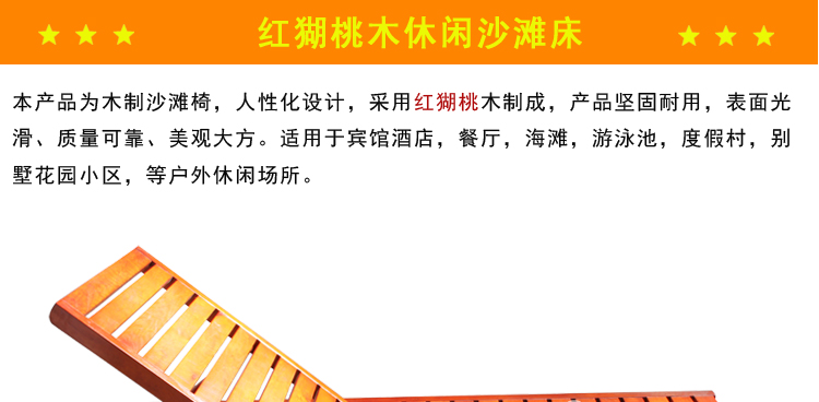 木制沙灘床,用于游泳池場所及海灘等游泳場所的休閑躺椅,屬于游泳池休閑用品的一種。一般叫法為沙灘床,也叫沙灘躺椅,沙灘椅,游泳池沙灘床,游泳池沙灘椅。?適用于賓館酒店,餐廳,海灘,游泳池,度假村,別墅花園小區(qū),等戶外休閑場所。
