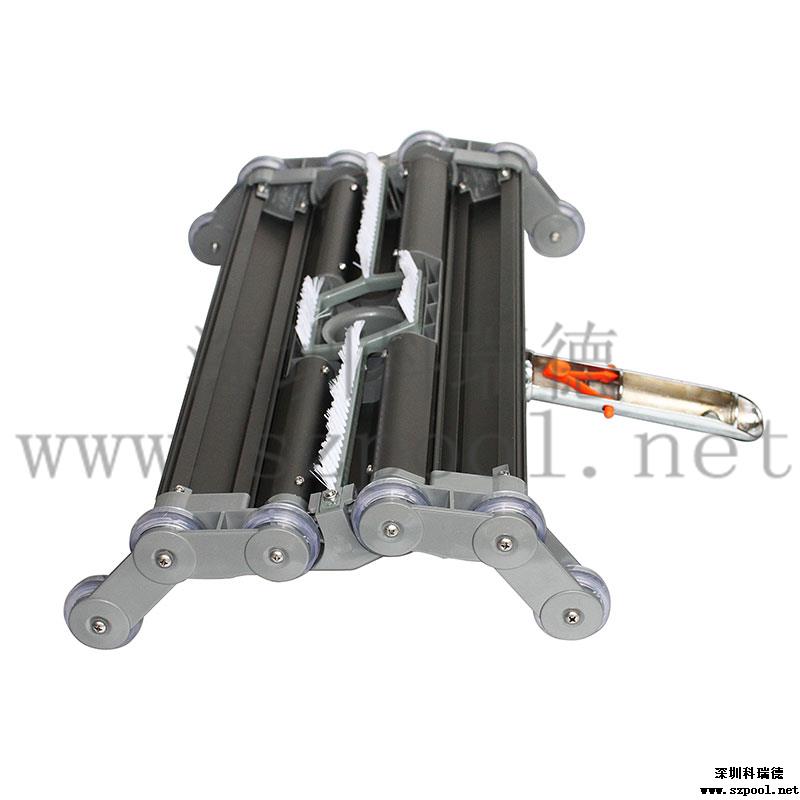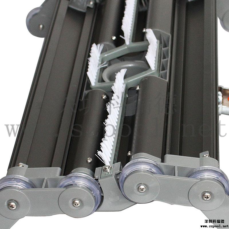 2,特殊設(shè)計(jì)的輪子:外面的四個(gè)輪子往上翹約45°,可以從池底爬行到池壁,且利于吸池壁與池底連接處的的臟物。