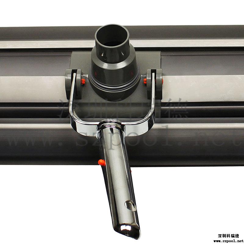 此吸污頭底部帶有毛刷,吸污的時(shí)候可以刷洗池底和池壁,使吸污干凈。毛刷為塑料毛刷,不會(huì)刷壞泳池池壁或池底。帶轉(zhuǎn)向的手柄轉(zhuǎn)動(dòng)靈活,方便吸污。