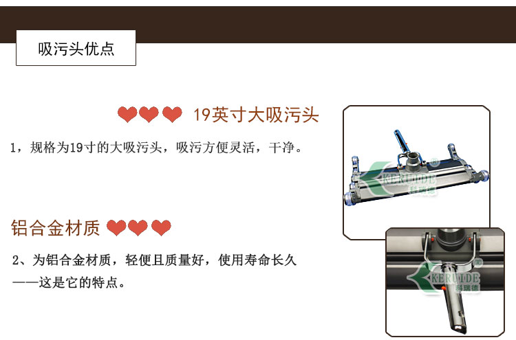3,鋁合金手柄帶360度轉(zhuǎn)向,可以從任何角度控制吸污盤,方便操作。