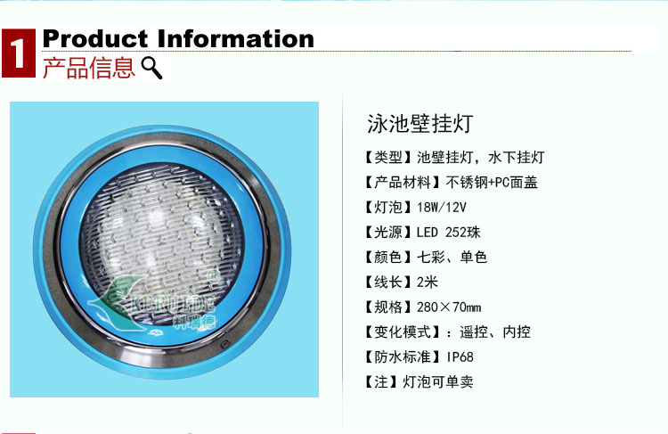 LED泳池池壁掛燈,采用LED燈泡,具有節(jié)能減排的優(yōu)點,想要節(jié)省成本,想要節(jié)約能源,保護環(huán)境,則本產品是泳池管理者的理想選擇。