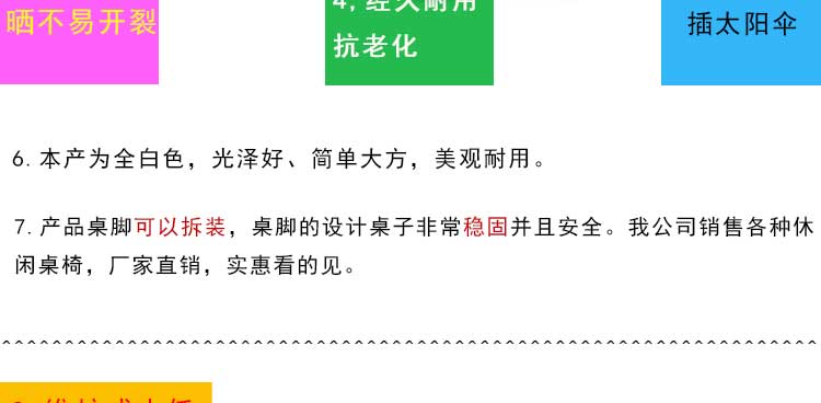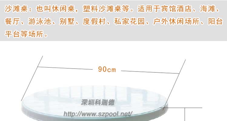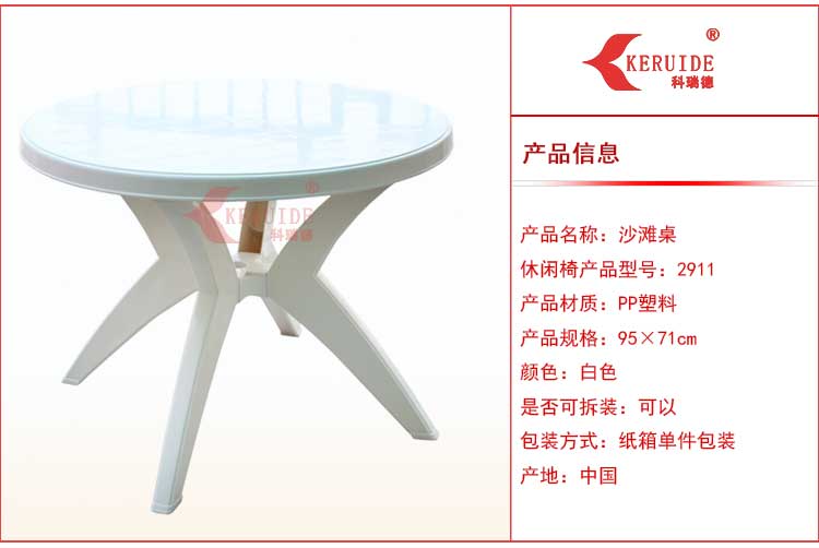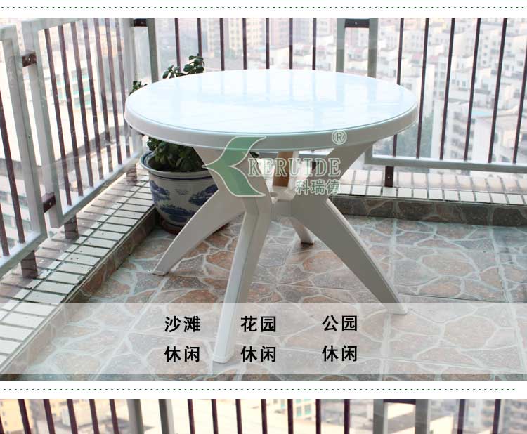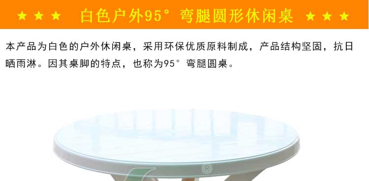 花園桌,也可以稱為休閑桌,沙灘桌,塑料圓桌等,本產品為國產花園桌,因其桌腳的特點,也稱為95°彎腿圓桌。一般用于賓館酒店、餐廳、海灘、泳游池、別墅、渡假村、私家花園、陽臺平臺等戶外休閑場所。