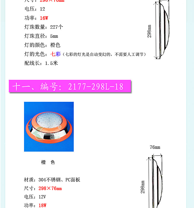 產(chǎn)品規(guī)格:12V/6W/8W/10W/16W/18W/20W