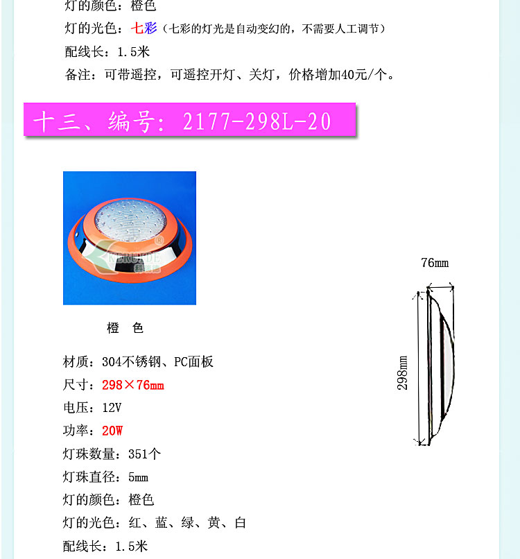 產(chǎn)品名稱:游泳池壁燈