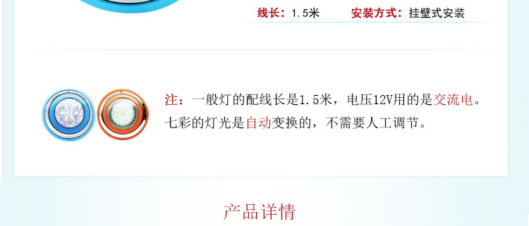 池壁燈:也叫壁掛燈、水下掛燈,一般安裝在游泳池、景觀池或噴泉的池壁, 用于水下裝飾及照明,不僅可以使泳池更加蔚藍(lán)美觀,還可以使泳客看清泳池水下情況,讓泳客暢快游泳。