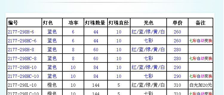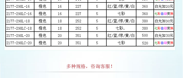 光色:七彩、單色(紅/藍(lán)/綠/黃/白)