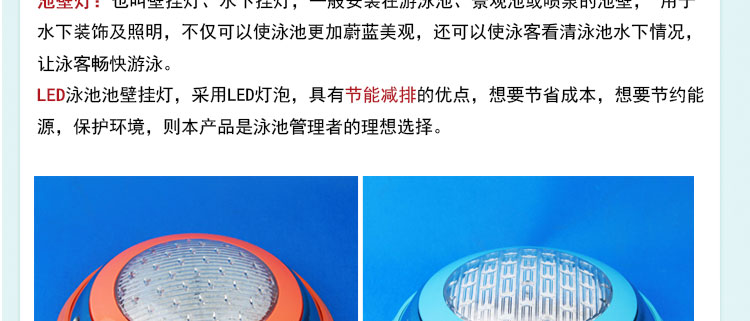 LED泳池池壁掛燈,采用LED燈泡,具有節(jié)能減排的優(yōu)點(diǎn),想要節(jié)省成本,想要節(jié)約能源,保護(hù)環(huán)境,則本產(chǎn)品是泳池管理者的理想選擇。
