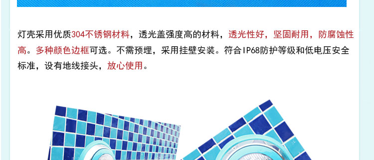 燈殼采用優(yōu)質(zhì)304不銹鋼材料,透光蓋改用強(qiáng)度高的透明材料,透光性好,堅(jiān)固耐用,防腐蝕性高。防水設(shè)計(jì),多種顏色邊可選,不需預(yù)埋,采用掛壁安裝。符合IP68防護(hù)等級(jí)低電壓標(biāo)準(zhǔn),設(shè)有地線接頭,使用放心。