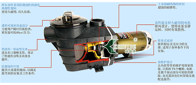 游泳池吸污泵的一種,持久穩(wěn)定,高效運轉(zhuǎn),又稱游泳池循環(huán)泵。