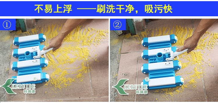 此吸污頭吸污干凈,底部帶毛刷,細密整齊,可以刷洗泳池池底與池壁相連處的臟物,使泳池清潔無死角。毛刷為塑料毛刷,不會刷壞泳池池壁或池底。而且是加重加厚型塑料吸污頭,推桿推出或推回都不會翹起來。