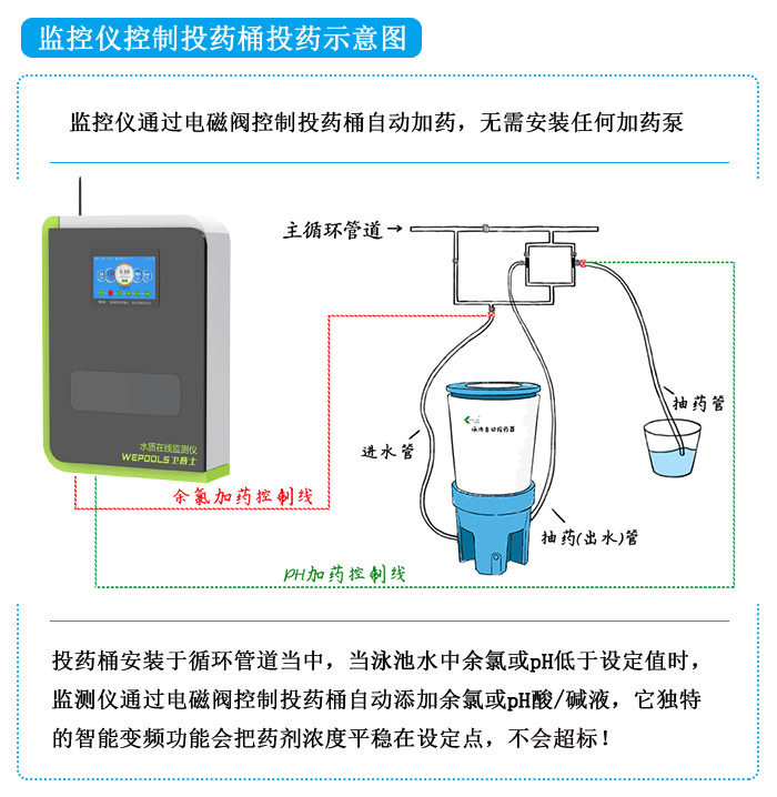 WEPOOLS 泳池在線監(jiān)測系統(tǒng)如何實(shí)現(xiàn)無泵自動投藥?