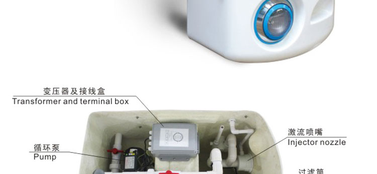 4.它自帶過(guò)濾,消毒,沖浪,吸污,扶梯,燈光等一體化.