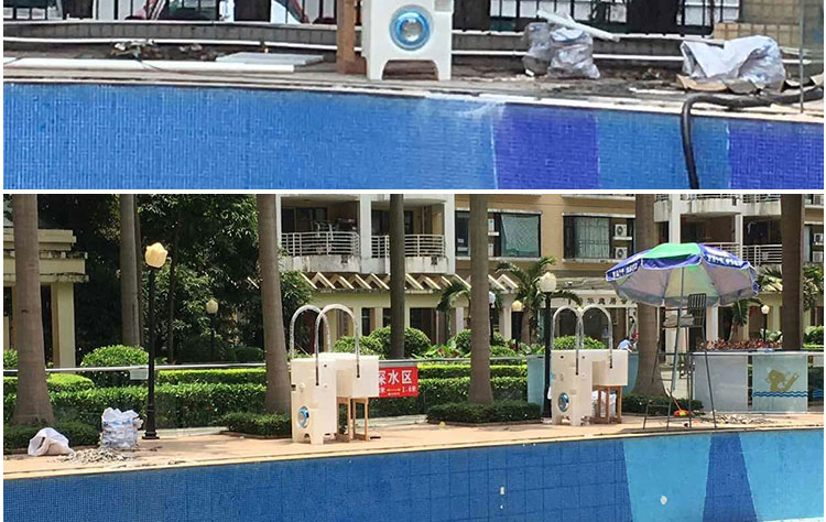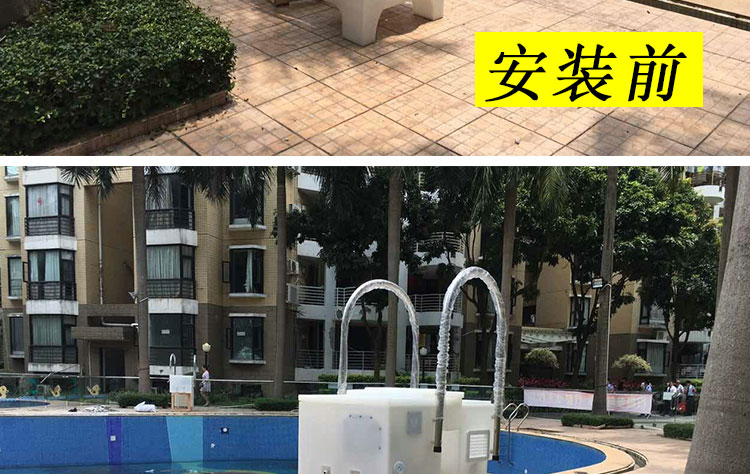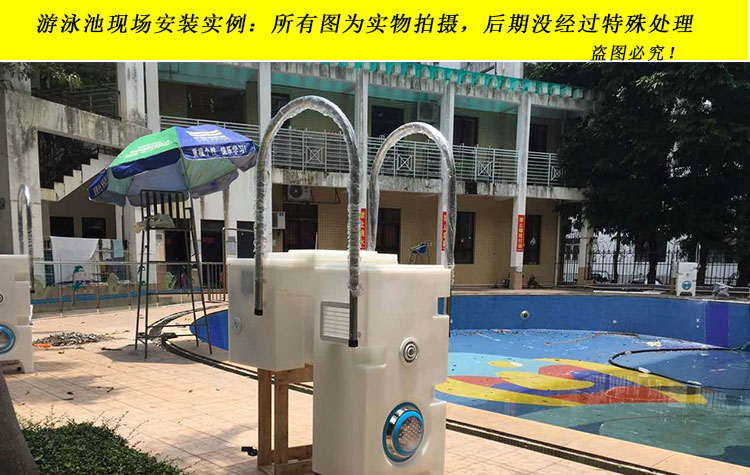 4.它自帶過濾,消毒,沖浪,吸污,扶梯,燈光等一體化.
