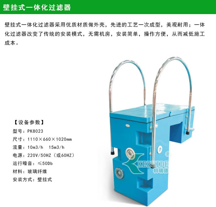【應用范圍】:適合小型泳池,溫泉,桑拿,按摩池等專用一體化過濾壁掛式設備。一般200立方以下,特別適合于小型私家泳池。???