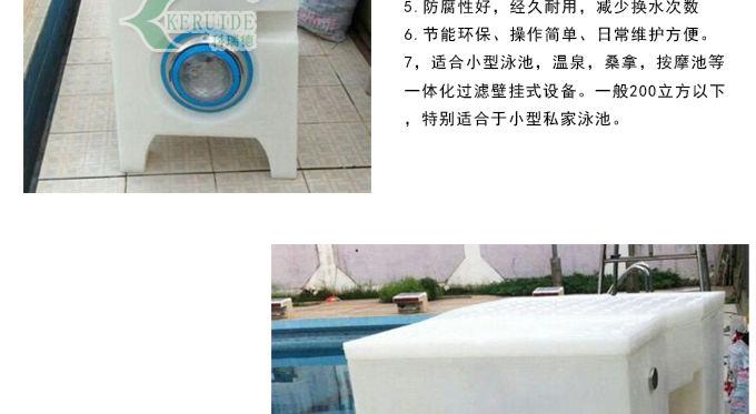 ?游泳池壁掛式一體化過(guò)濾器采用優(yōu)質(zhì)的亞克力原料做外殼,其耐酸性能好,易清洗,不易褪色、防止紫外線分子,不易老化;一體化過(guò)濾器安裝無(wú)需機(jī)房,安裝簡(jiǎn)單,操作方便,從而減低施工成本。同時(shí)一體化過(guò)濾器符合泳池規(guī)范和標(biāo)準(zhǔn)。
