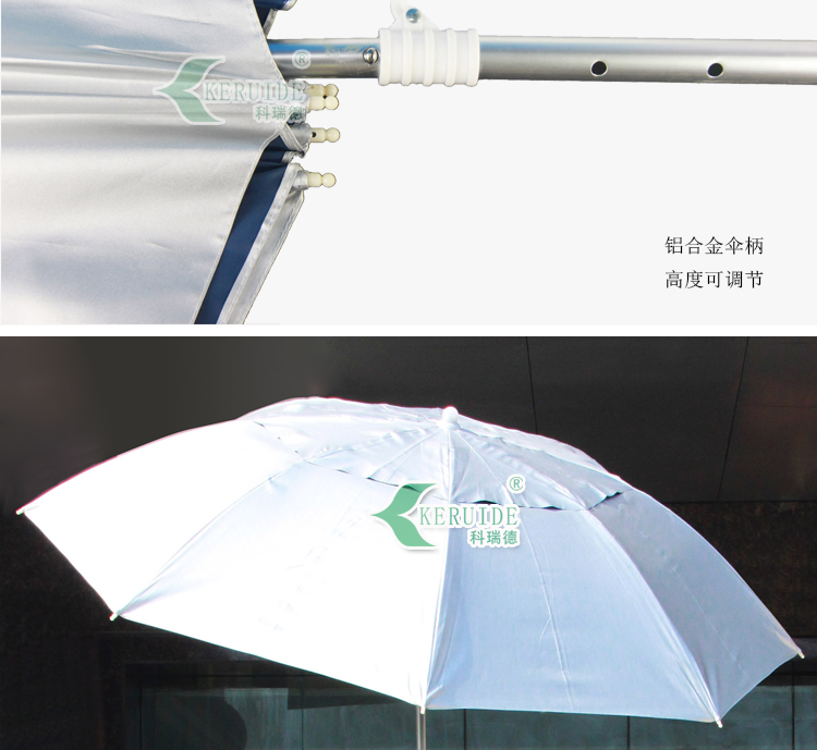 傘桿:上桿采用直徑22mm的鋁合金管,下桿采用直徑19mm的鋁合金管。上桿中部有一個萬向轉(zhuǎn)向,可使傘頭向任意方向角度彎折。