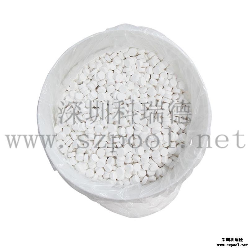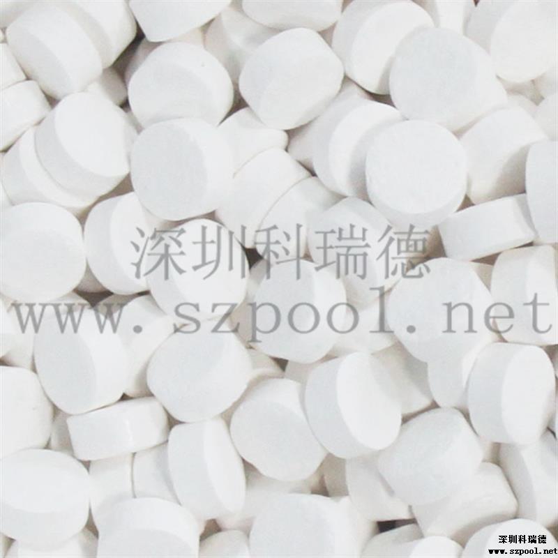 二水二氯帶有2個(gè)結(jié)晶水,與傳統(tǒng)的二氯異氰尿酸鈉相比,產(chǎn)品氯氣味輕(有效氯不易揮發(fā)),這表明產(chǎn)品的化學(xué)性質(zhì)穩(wěn)定;復(fù)效清泳池消毒片就是以二水二氯顆粒為主要成分制作的消毒片,具有以上二水二氯的各項(xiàng)優(yōu)點(diǎn),氯味輕、無(wú)粉塵,產(chǎn)品pH偏中性,用于游泳池不會(huì)對(duì)泳池水的pH值造成不良影響,而且藥劑揮發(fā)穩(wěn)定,用于科瑞德泳池自動(dòng)投藥器進(jìn)行自動(dòng)投加。