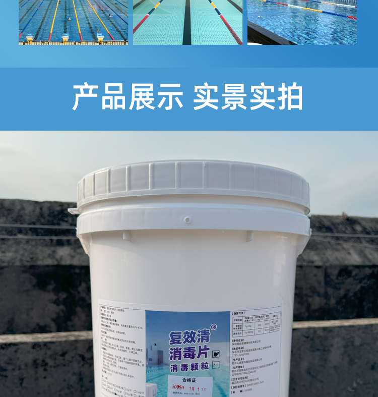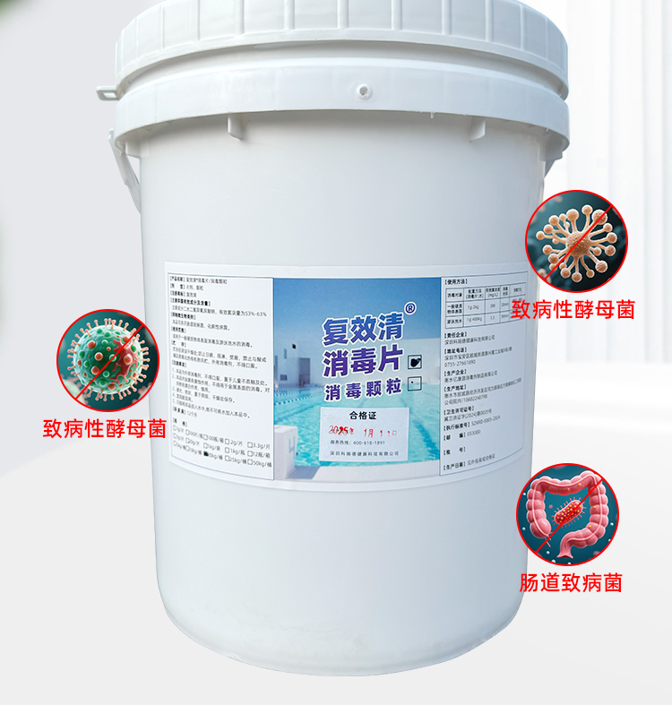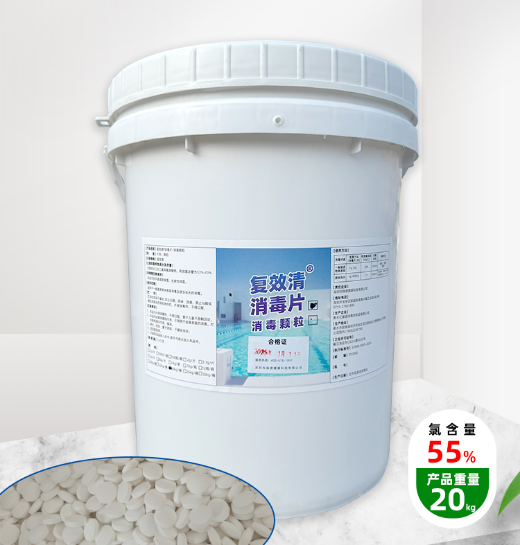 游泳池消毒片有很多種,其中復(fù)效清泳池消毒片是以二水二氯異氰尿酸鈉為主要有效成分的游泳池消毒片,屬于游泳池水處理藥劑的一種,有效氯含量≥55%,針對(duì)池水殺菌消毒使用,防止水體變壞!