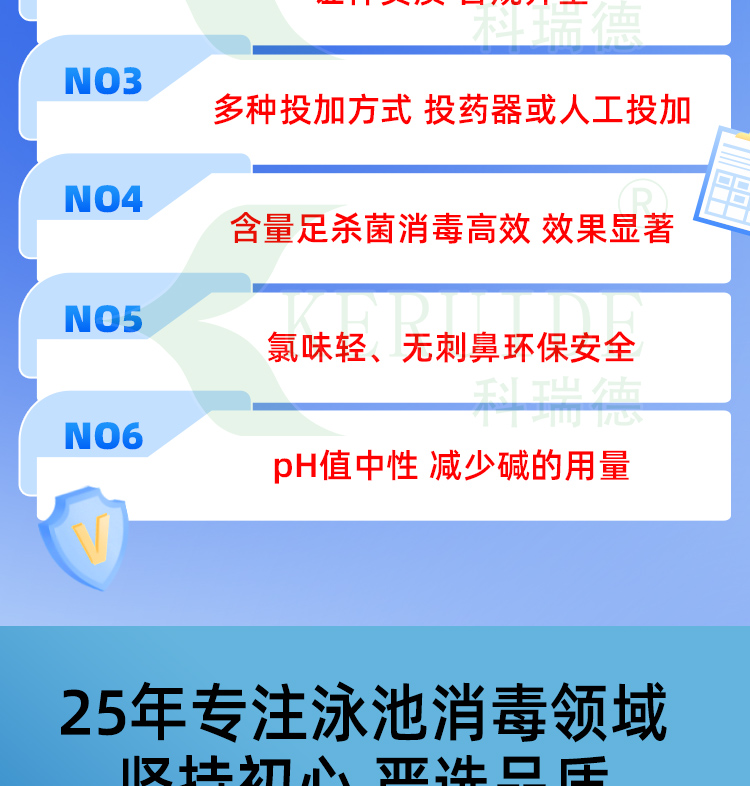 4、嚴(yán)禁與三氯或其他任何消毒劑混放或混用,以免發(fā)生危險(xiǎn)!