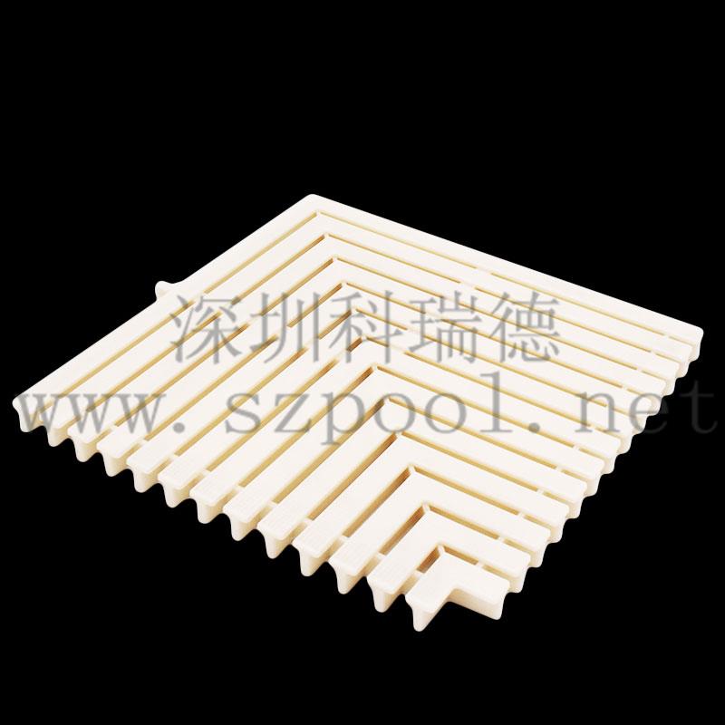 【格柵轉(zhuǎn)角質(zhì)量可靠】:是由ABS材料制成,是目前游泳池格柵理想的材料,具有耐腐蝕性與韌性。
