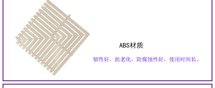 【格柵轉(zhuǎn)角特點(diǎn)】具有防曬,防滑,韌性高不易折斷,抗腐蝕等功能,組分容易,安裝簡(jiǎn)單,使用安全,表面有凸紋具有防滑,腳底按摩功能!