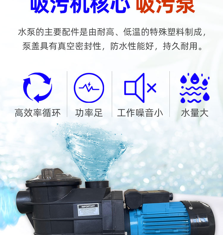 2.要根據(jù)游泳池的面積來(lái)選擇吸污機(jī)