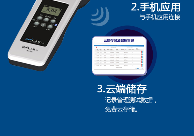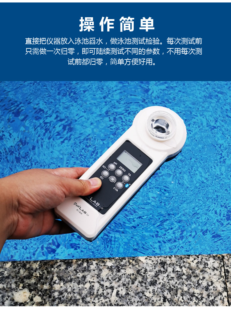 普量水質(zhì)檢測儀內(nèi)置取樣槽,使用方便,操作簡單,6個(gè)按鍵能測:余氯/ph/氰尿酸/尿素/總堿度/浸腳池余氯/臭氧/二氧化氯/溴等14個(gè)指標(biāo),擁有IP68防水性能,即使掉入水中都也不用擔(dān)心進(jìn)水,儀器內(nèi)置藍(lán)牙模塊,無線網(wǎng)絡(luò)連接,數(shù)據(jù)能上傳到手機(jī)端及電腦端,分析數(shù)據(jù),及時(shí)維護(hù)水質(zhì)。廣泛用于各類游泳館、自來水廠、醫(yī)污用水、飲用水等等。