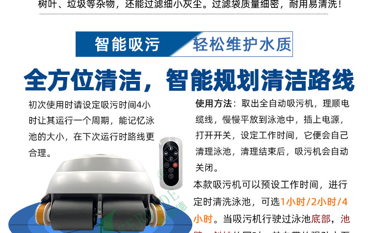 海獅全自動吸污機是一款能爬墻/爬坡/爬階梯,能吸頭發(fā)、藻類和細菌、死皮、大葉子和其他沉到水池底部污垢的全自動吸污機,無需人工在場也可以工作,大大地減少了工作量,提高工作效率,以下是海獅全自動吸污機的詳情: