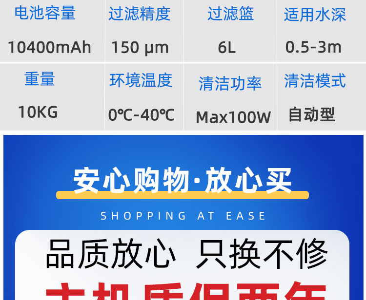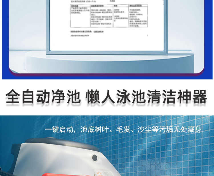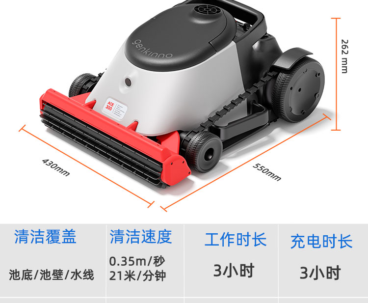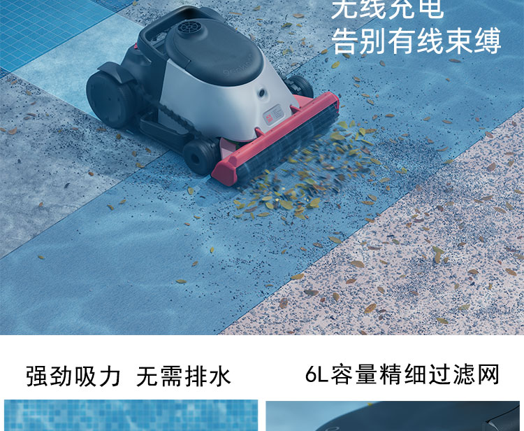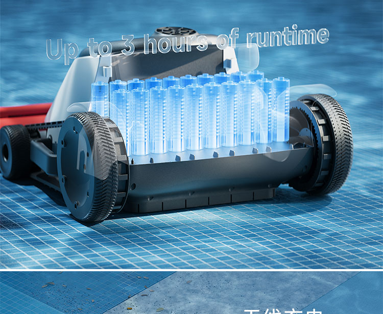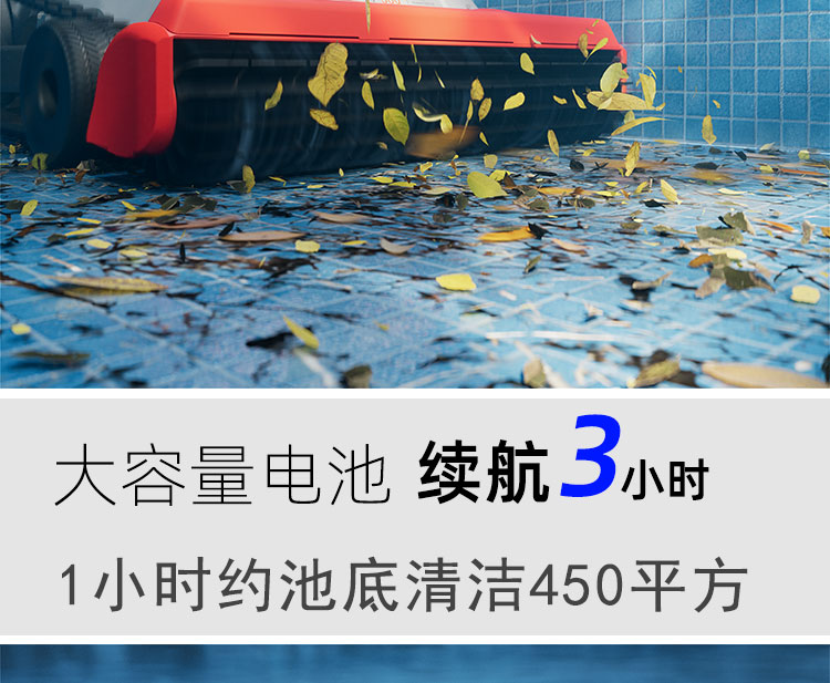 3小時(shí)續(xù)航輕松搞定500-600㎡以內(nèi)泳池。清潔效率提升60%!告別布線束縛,開機(jī)即用,商用泳池或家用皆宜
