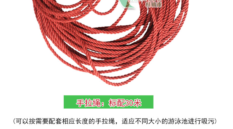 2、可以按需要配套相應長度的手拉繩,適應不同大小的游泳池進行吸污;主要用于大型泳池吸污,吸污快速,干凈,可用于3.0匹衛(wèi)普士吸污機3013和3.5匹衛(wèi)普士吸污機3014。