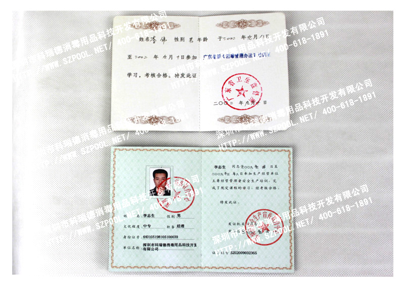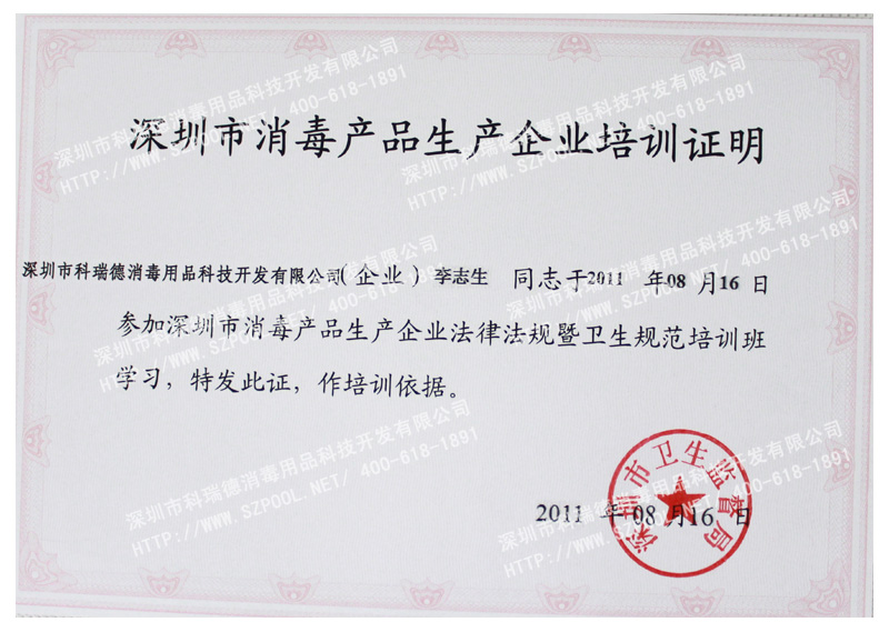 消毒產(chǎn)品衛(wèi)生管理培訓(xùn)證書 |