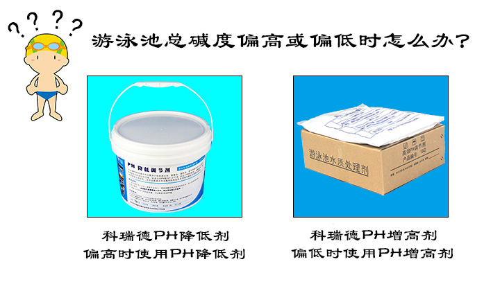 那當(dāng)游泳池總堿度偏高或偏低時(shí)該怎么辦呢?當(dāng)總堿度偏低時(shí),可使用PH增高劑來(lái)調(diào)節(jié),即我們常用的碳酸鈉ph增高劑;當(dāng)總堿度偏高時(shí),可使用PH降低劑來(lái)進(jìn)行調(diào)節(jié),即我們常用的科瑞德PH降低劑。需要注意的是,在加入補(bǔ)充藥劑過(guò)程中要在局部形成比較高的濃度,這樣才能降低或者增加總堿度,所以需要把pH降低劑或者碳酸鈉一次性加入水中,不要少量多次添加,要一次性投放。(PH值增高或降低的調(diào)節(jié)機(jī)詳情可進(jìn)入http://www.m.gaodsc.com/products/c12.html)