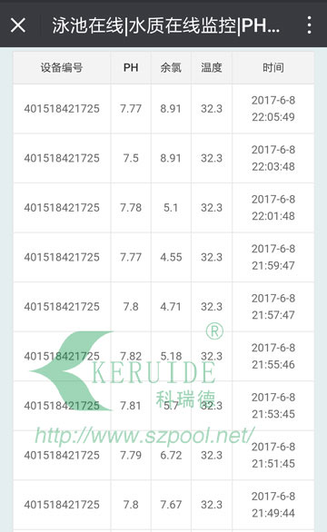 在晚上收?qǐng)龊螅?1:15),先投入氯粉使用得池水余氯超過5.0mg/L(約8.0mg/L),消毒粉大約加了20KG(圖2數(shù)據(jù))。